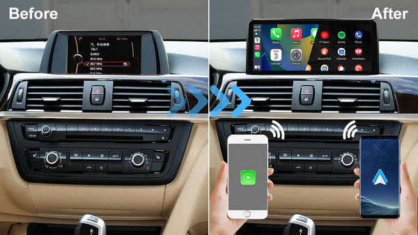This is replacement screen for BMW, support Apple CarPlay + Android Auto + Mirror-link functions