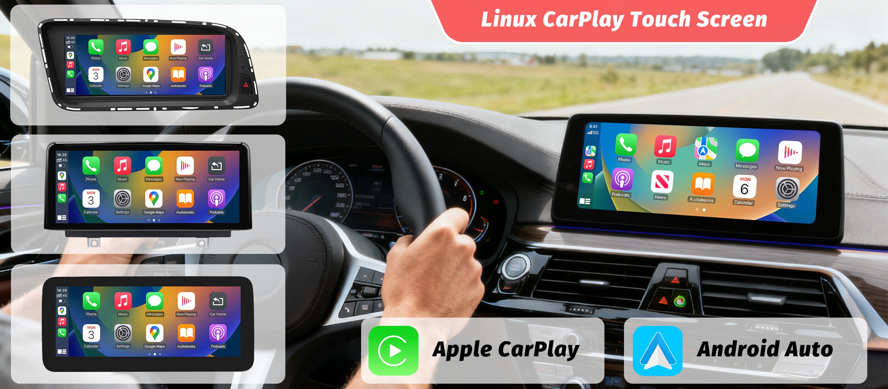 This is the Linux system HD replacement touch screen, support Wireless Apple CarPlay + Wireless Android Auto + Mirroring functions.