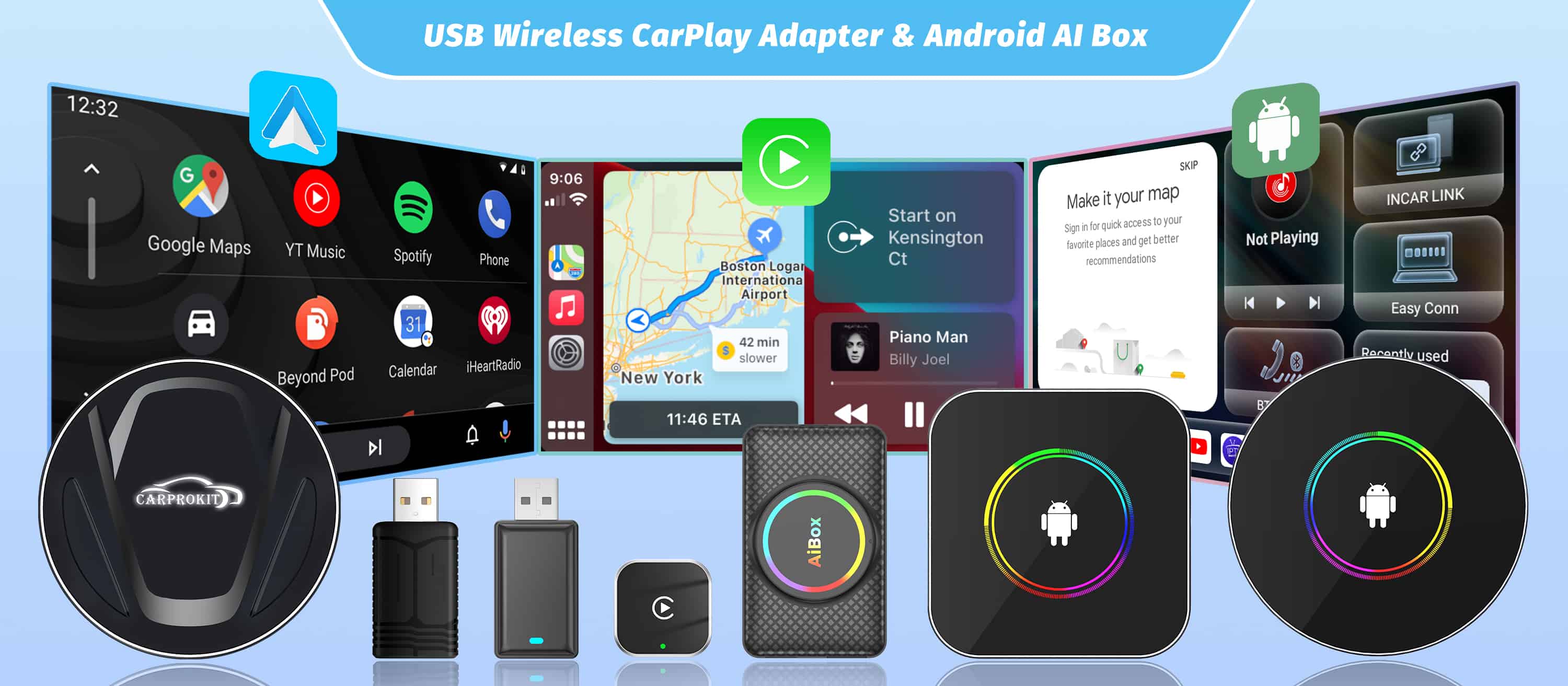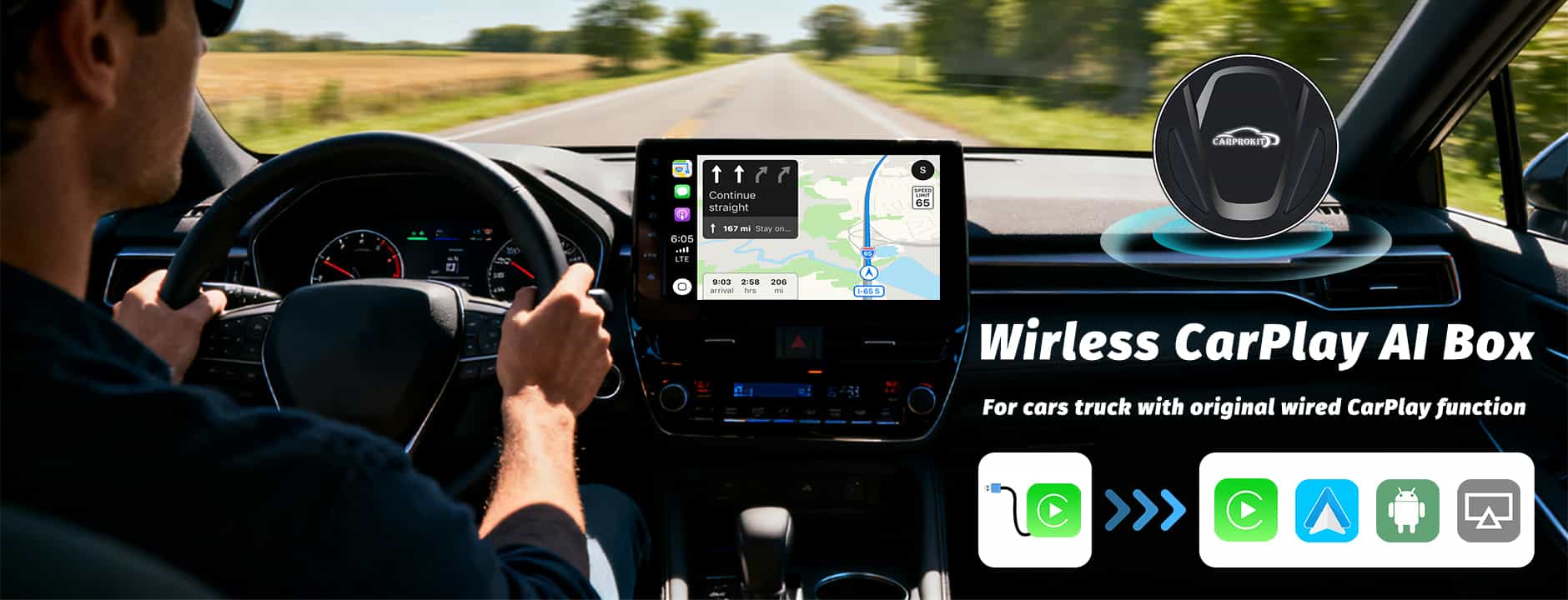 The USB CarPlay adapter will helps to change car original wired CarPlay | Android Auto to wirelsss CarPlay | Android Auto.
