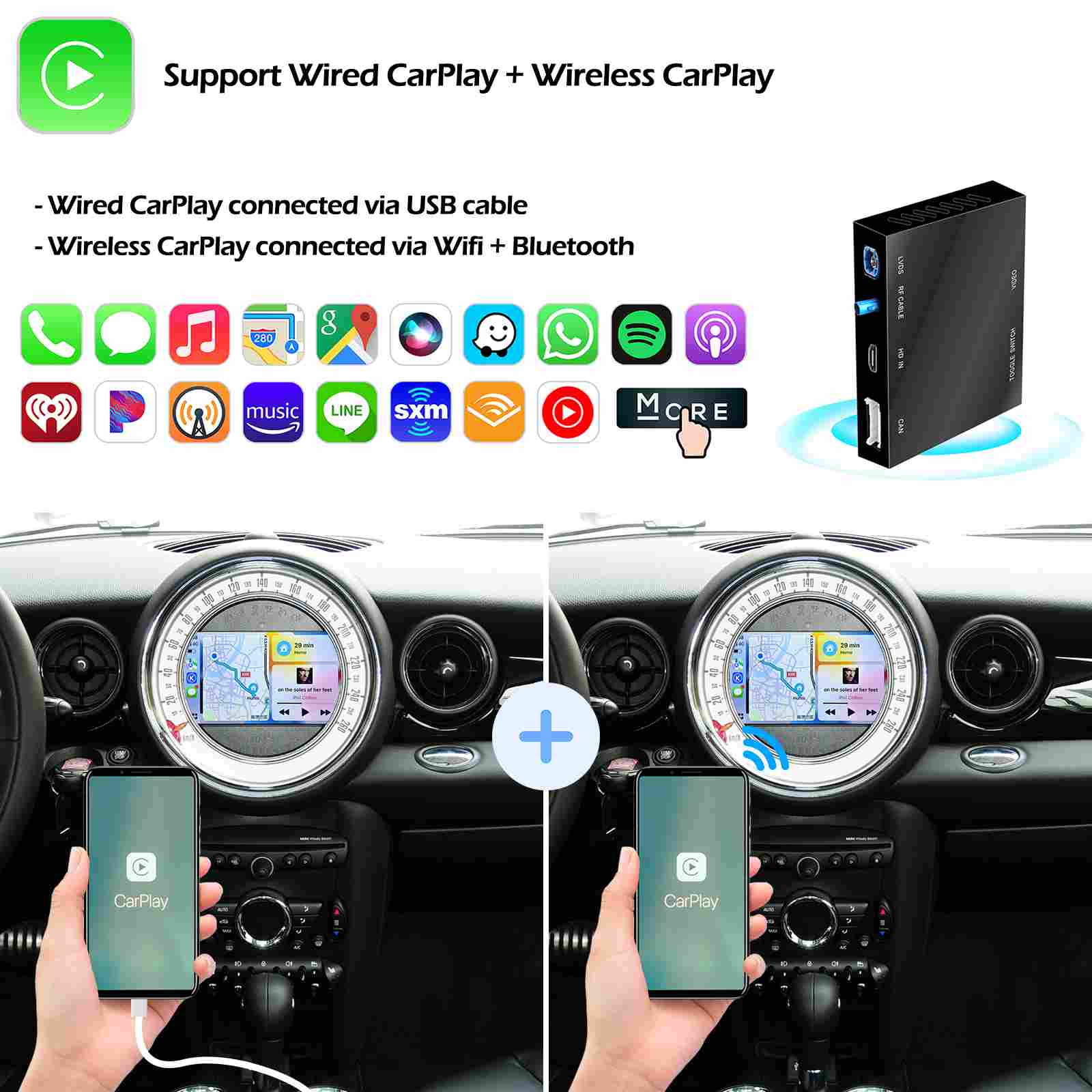 1. Wired Apple CarPlay + Wireless Apple CarPlay